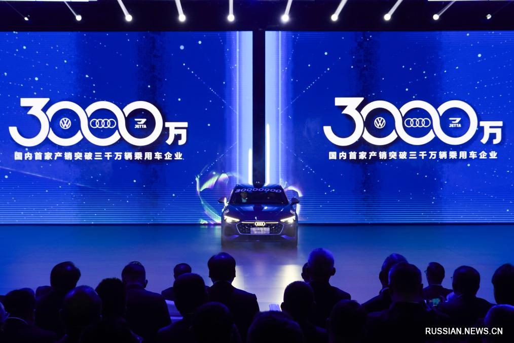 Чанчунь, 31 октября /Синьхуа/ -- В четверг, 30 октября, 30-миллионный автомобиль сошел с конвейера FAW-Volkswagen, совместного предприятия китайской компании FAW /"Первый автомобильный завод"/ и немецкого концерна Volkswagen в Чанчуне /провинция Цзилинь, Северо-Восточный Китай/. Компания FAW-Volkswagen стала первым автопроизводителем в Китае, вышедшей на 30-миллионный рубеж по объемам производства и продаж легковых автомобилей.