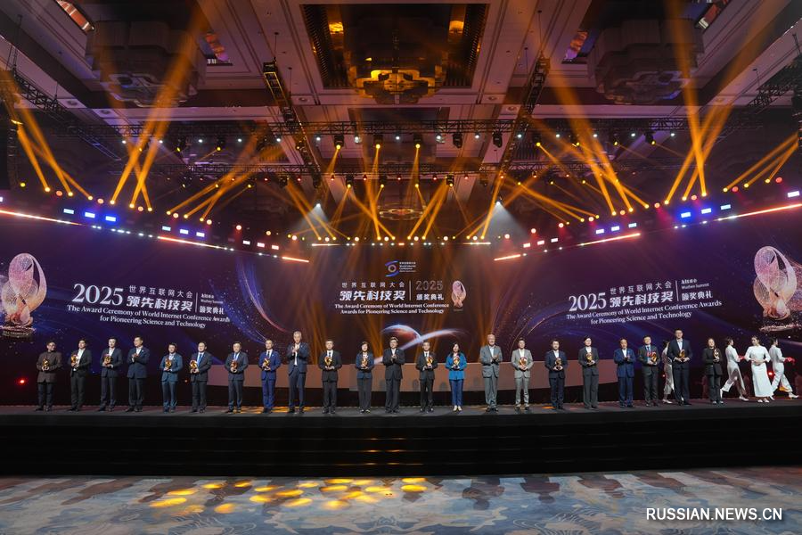 Ханчжоу, 7 ноября /Синьхуа/ -- Церемония вручения премий Всемирной конференции по вопросам интернета /World Internet Conference, WIC/ 2025 года за новаторские достижения в области науки и технологий состоялась в четверг в поселке Учжэнь /пров. Чжэцзян, Восточный Китай/. Премии за прорывы в передовых областях получили 17 международных проектов.