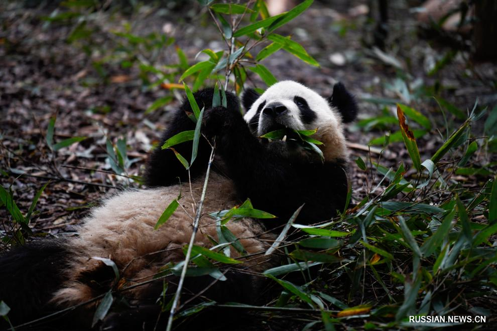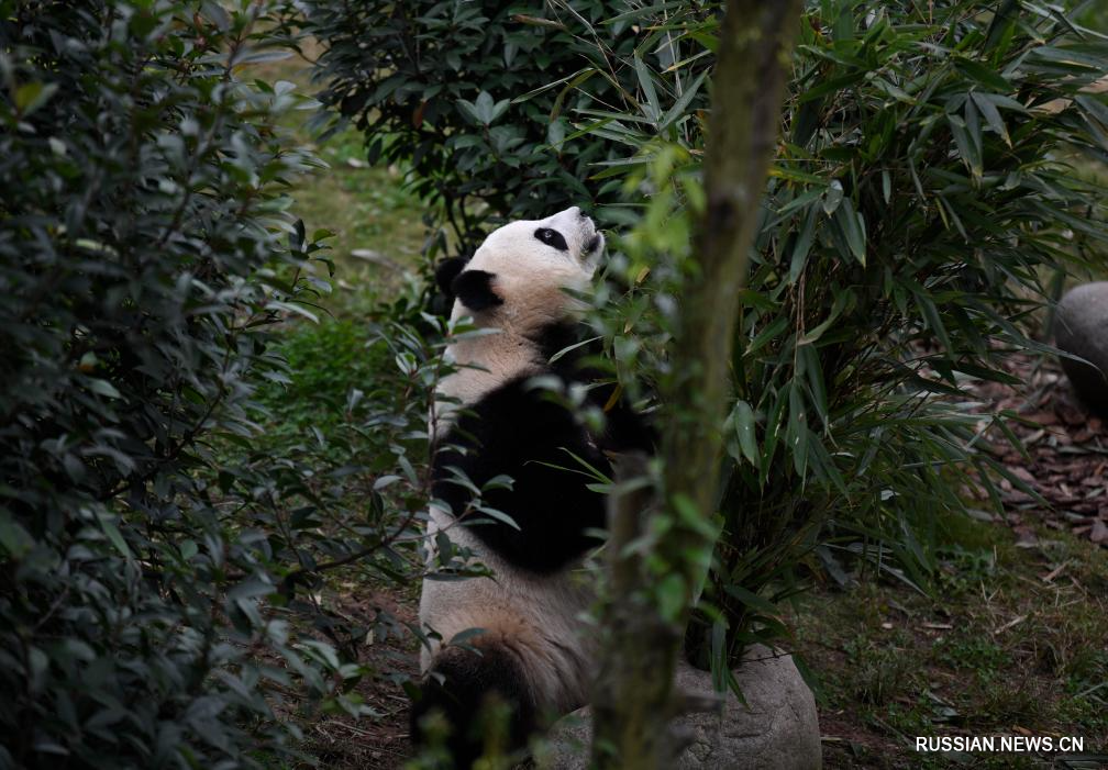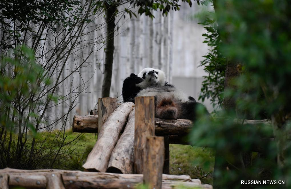 Большие панды на исследовательской базе по разведению больших панд в г. Чэнду