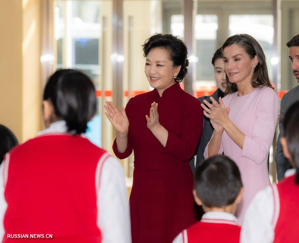 Пекин, 12 ноября /Синьхуа/ -- Пэн Лиюань, супруга председателя КНР Си Цзиньпина, и королева Испании Летисия, которая сопровождает короля Испании Филиппа VI в ходе его государственного визита в Китай, посетили в среду Пекинский демонстрационный центр обслуживания людей с ограниченными возможностями.