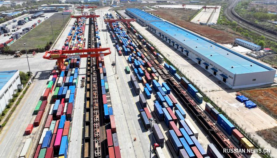 15 апреля 2024 года, на фотографии запечатлен центр мультимодальных перевозок Демонстрационной зоны регионального торгово-экономического сотрудничества Китай-ШОС. /Фото: Синьхуа/