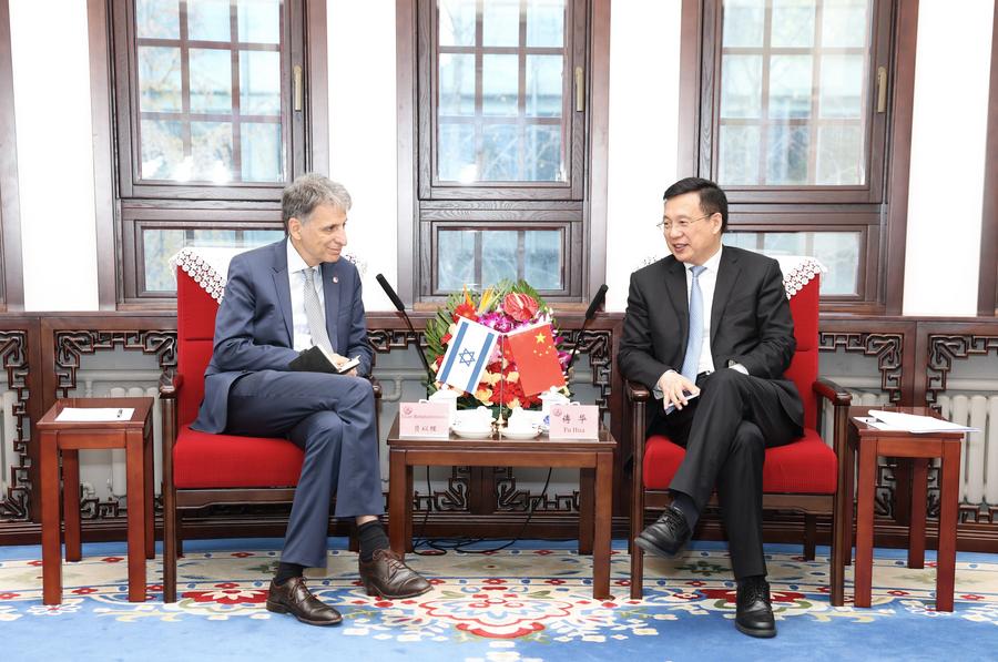 Пекин, 13 ноября /Синьхуа/ -- Генеральный директор китайского информационного агентства Синьхуа Фу Хуа в четверг в Пекине провел встречу с послом Израиля в КНР Элиавом Белоцерковским.
