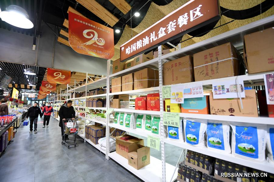 10 января 2025 года, покупатели выбирают зерновую и масличную продукцию из Казахстана в магазине компании "Айцзюй" в городе Сиань провинции Шэньси /Северо-Западный Китай/. /Фото: Синьхуа/