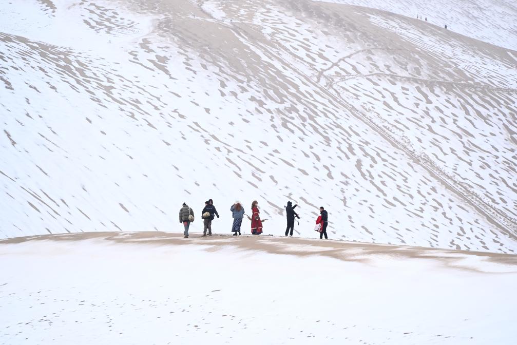 Дуньхуан, 24 ноября /Синьхуа/ -- 23 ноября под влиянием холодных воздушных масс в городе Дуньхуан провинции Ганьсу /Северо-Западный Китай/ выпал снег. Знаменитые местные достопримечательности, такие как гора Миншашань и озеро Юэяцюань, облачились в серебряный наряд и выглядят невероятно красиво. -0-