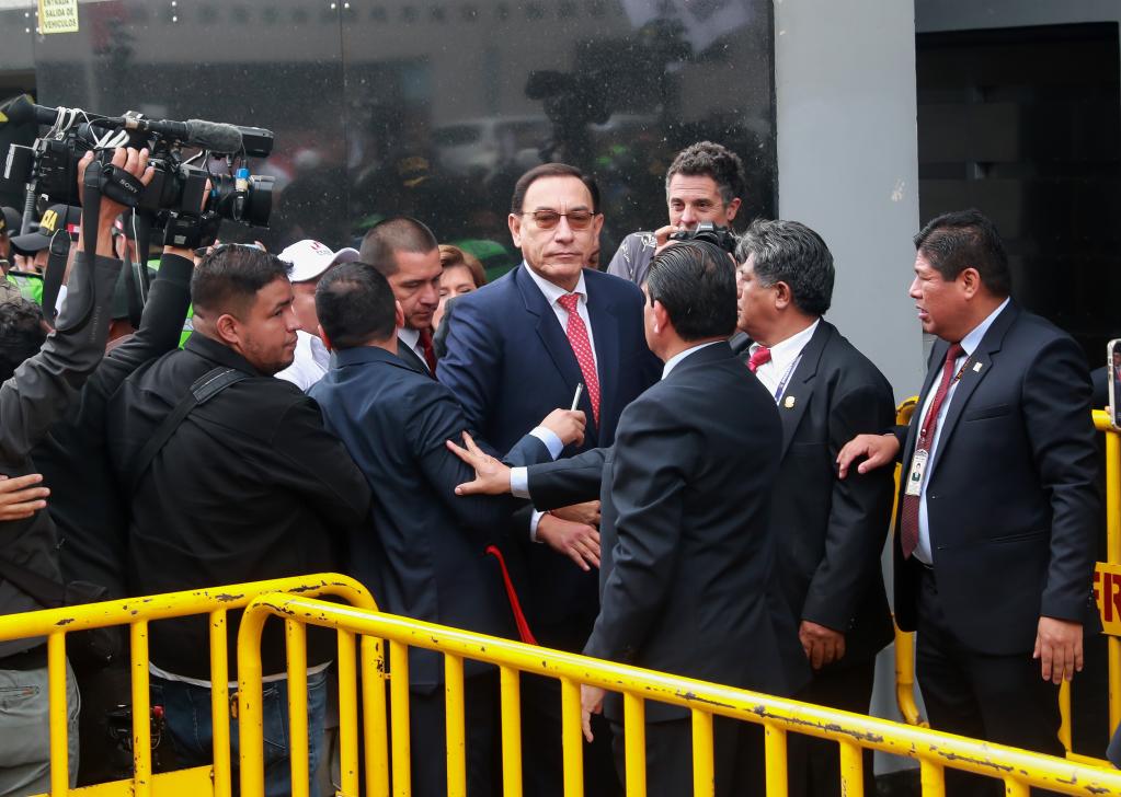 26 ноября, Лима. Бывший президент Перу Мартин Вискарра /в центре/ прибывает в здание суда. /Фото: Синьхуа/