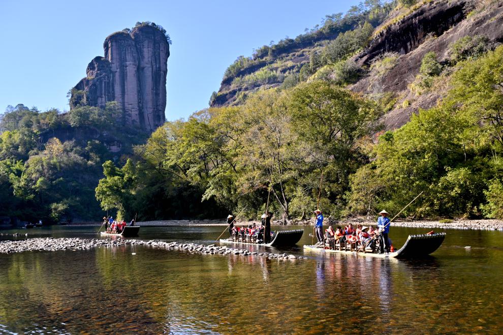 Уишань /пров. Фуцзянь/, 3 декабря /Синьхуа/ -- В последние дни город Уишань пров. Фуцзянь /Восточный Китай/, где лазурное небо, прозрачная вода и живописная растительность, своим уникальным зимним пейзажем привлекает многочисленных туристов. -0-