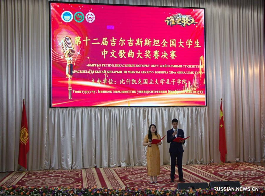 Бишкек, 5 декабря /Синьхуа/ -- В пятницу в Бишкекском государственном университете /БГУ/ состоялся финал 12-го конкурса по исполнению китайских песен среди студентов. В нем приняли участие 13 конкурсантов из четырех Институтов Конфуция в Кыргызстане.