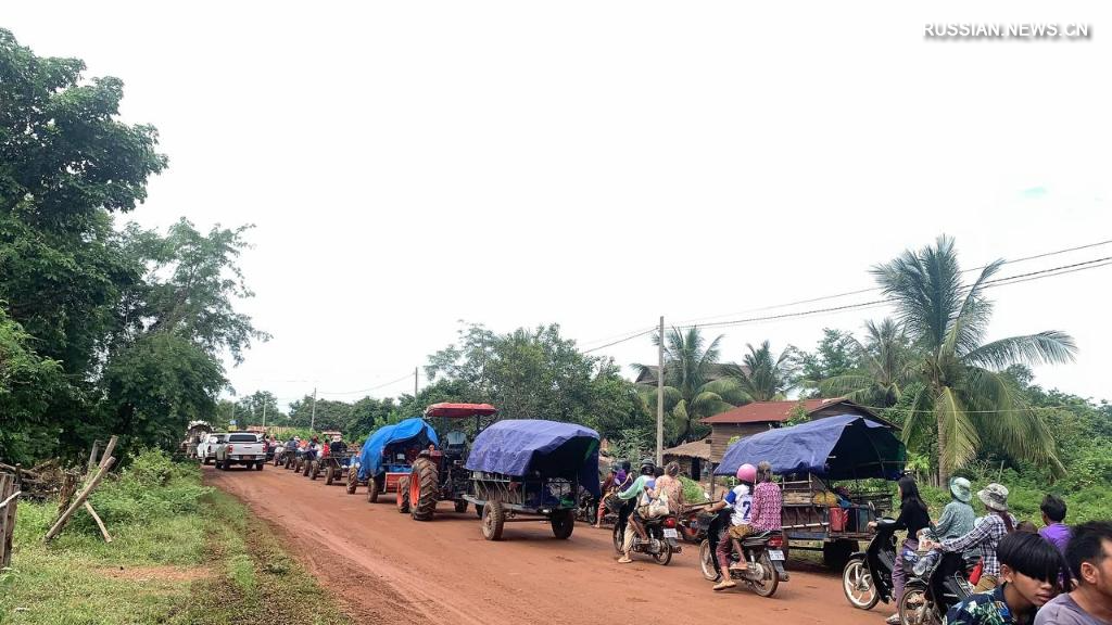 24 июля, провинция Оддармеантьей, Камбоджа. Эвакуация людей в приграничной зоне. /Фото: Синьхуа/