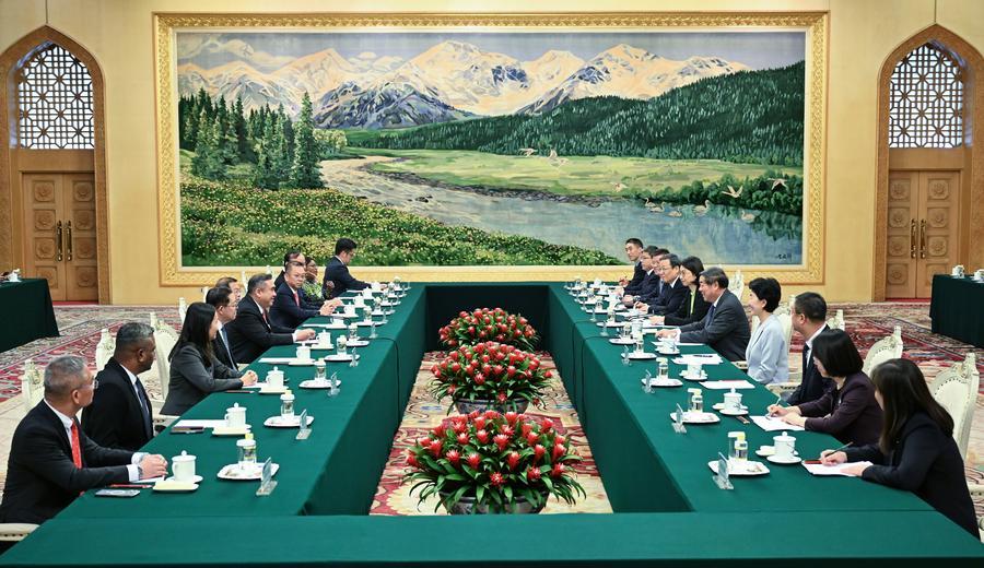 15 декабря, Пекин. Член Политбюро ЦК КПК, вице-премьер Госсовета КНР Хэ Лифэн проводит встречу с малайзийской делегацией во главе с генеральным секретарем Партии демократического действия, министром транспорта Малайзии Энтони Локе Сиеу Фуком. /Фото: Синьхуа/