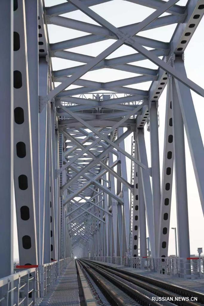 6 декабря, Нижнеленинское, Россия. Железнодорожный мост Тунцзян -- Нижнеленинское на китайско-российской границе. /Фото: Синьхуа/