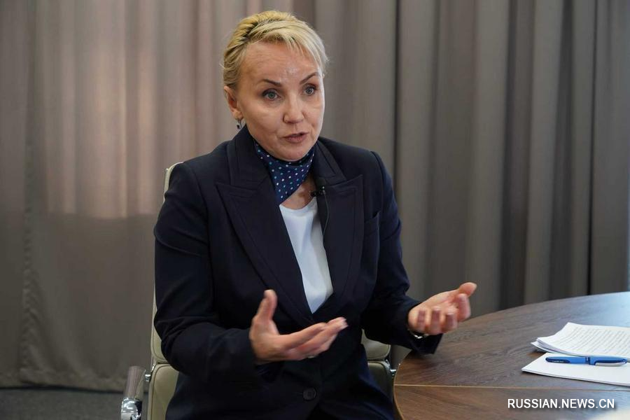 8 декабря, Биробиджан, Россия. Губернатор Еврейской автономной области РФ Мария Костюк дает интервью корр. Синьхуа. /Фото: Синьхуа/