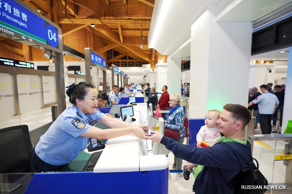 18 декабря 2025 года, сотрудники КПП международного аэропорта "Фэнхуан" в городе Санья провинции Хайнань /Южный Китай/ встречают первых пассажиров, прибывших на остров после запуска режима независимых таможенных операций на всей территории Хайнаньского порта свободной торговли. /Фото: Синьхуа/