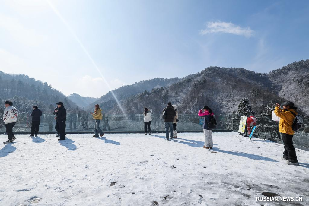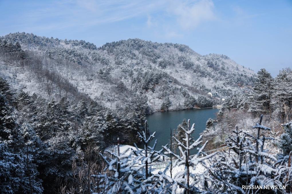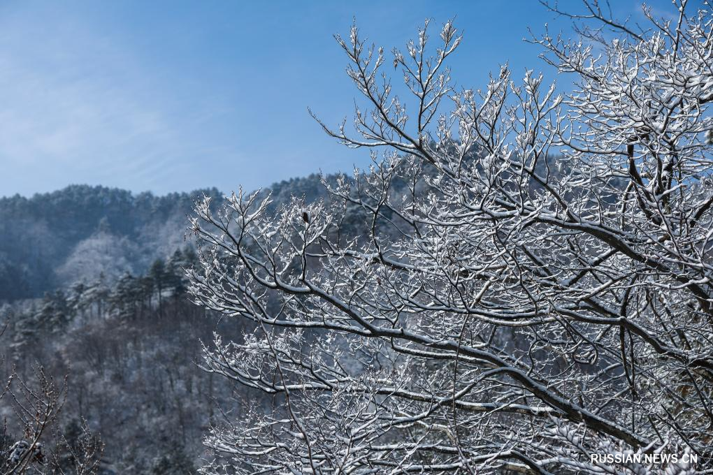 Живописные снежные пейзажи в ландшафтной зоне Даминшань на востоке Китая