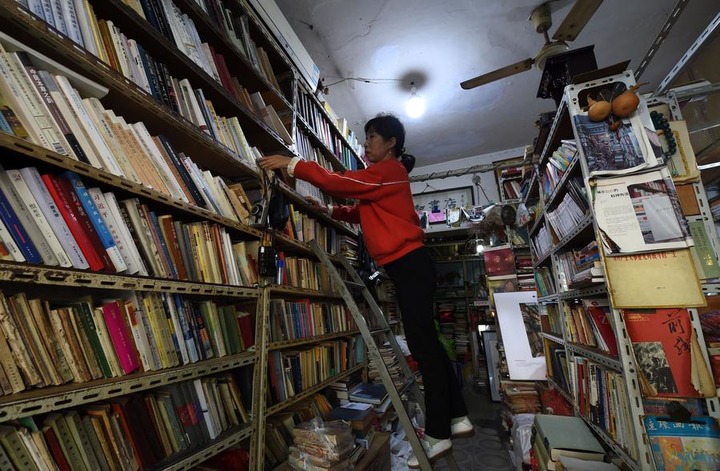 19 апреля 2021 года, женщина наводит порядок на книжных полках в магазине "Цзэнчжи", неприметной букинистической лавке в центре города Хэфэй /адм. центр пров. Аньхой, Восточный Китай/. /Фото: Синьхуа/