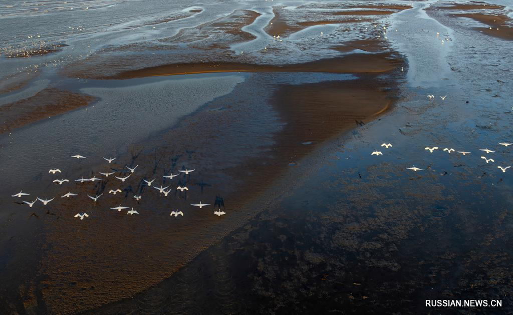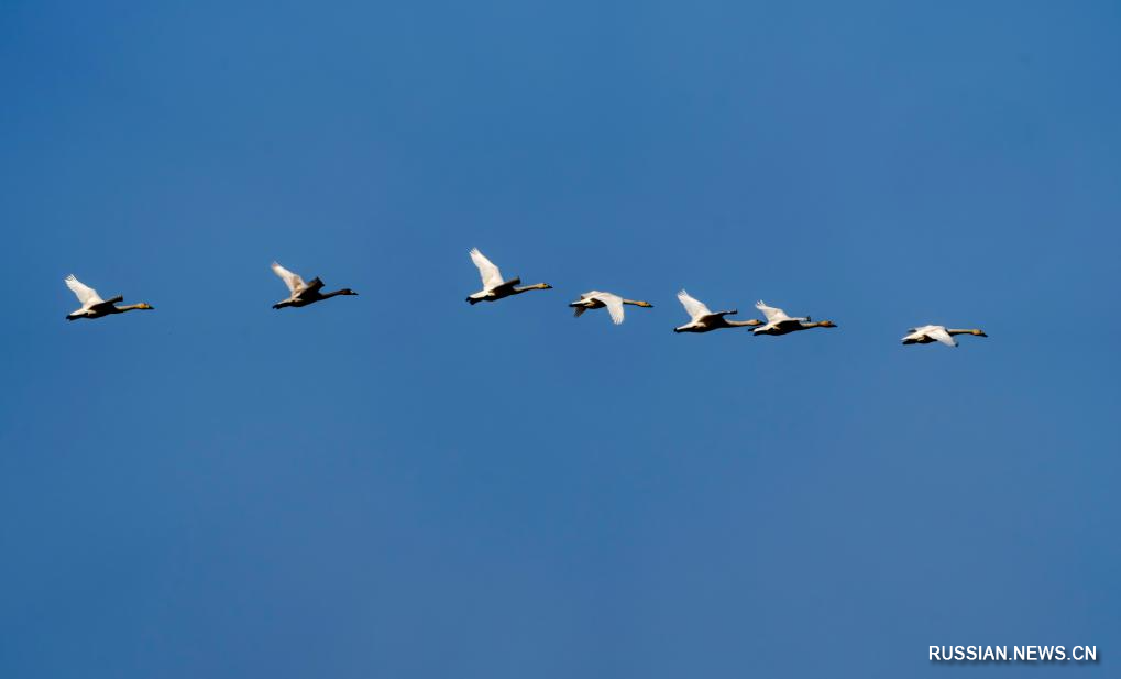 Американские лебеди зимуют на водно-болотных угодьях на востоке Китая_Russian.news.cn