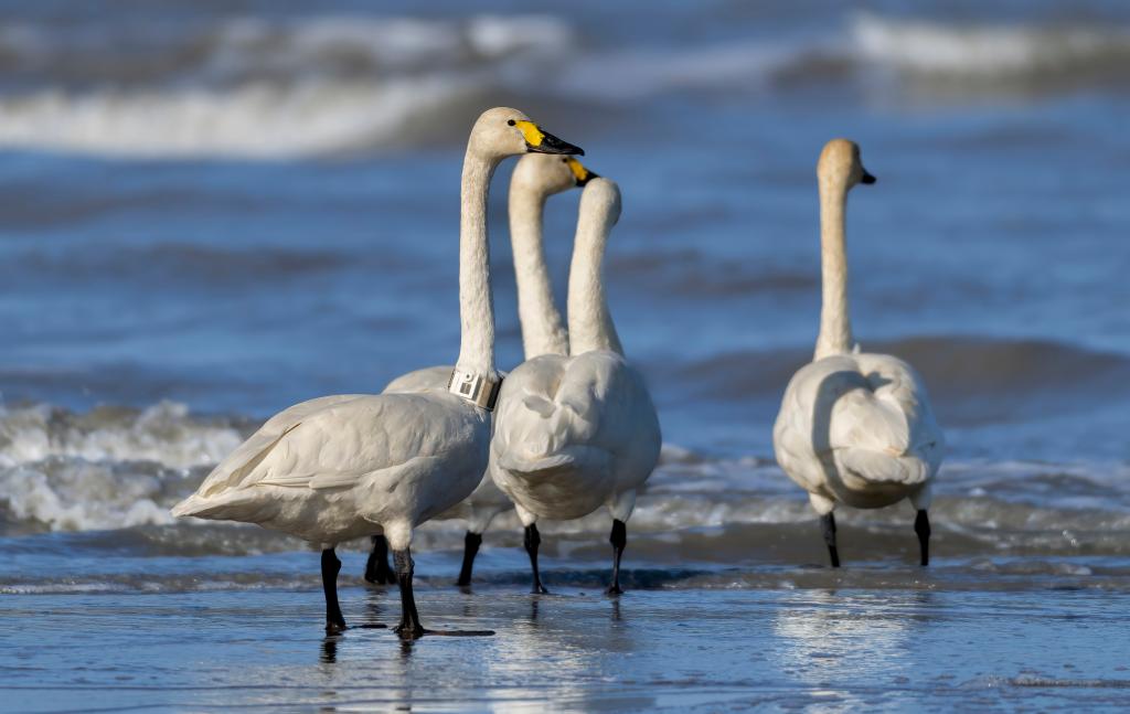 Американские лебеди зимуют на водно-болотных угодьях на востоке Китая
