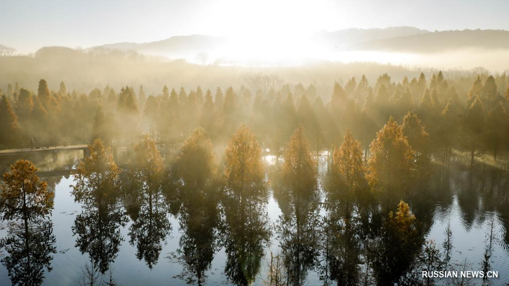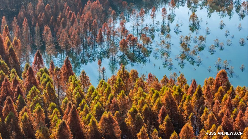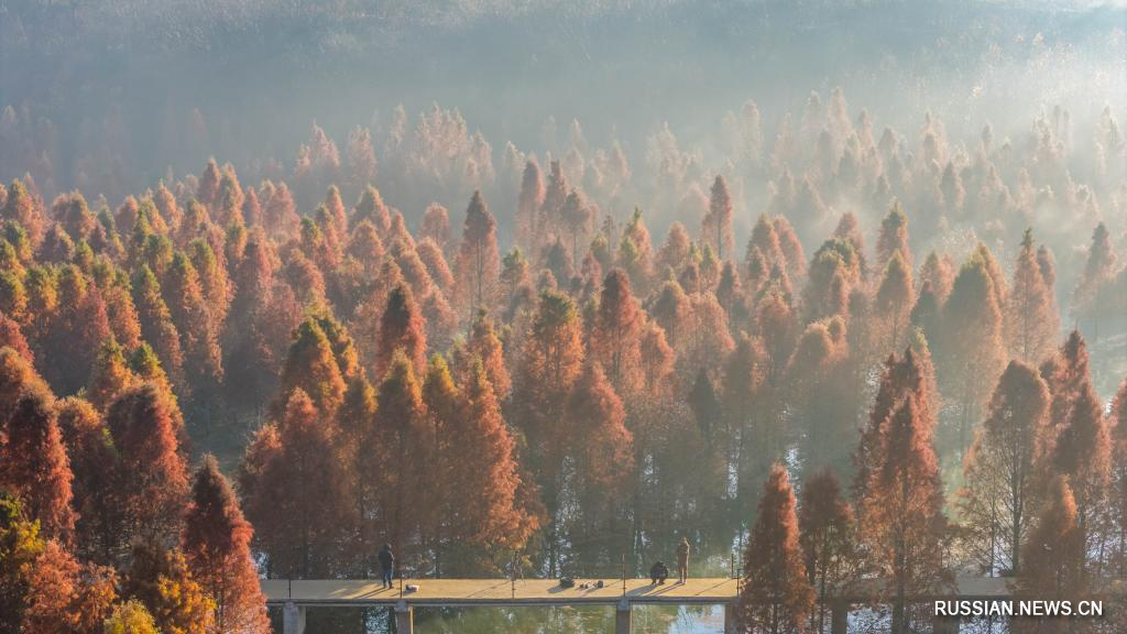 Куньмин, 15 января /Синьхуа/ -- Зимние леса из метасеквойи глиптостробовидной в заболоченных угодьях в деревне Дяньвэй района Паньлун города Куньмин провинции Юньнань на юго-западе Китая.