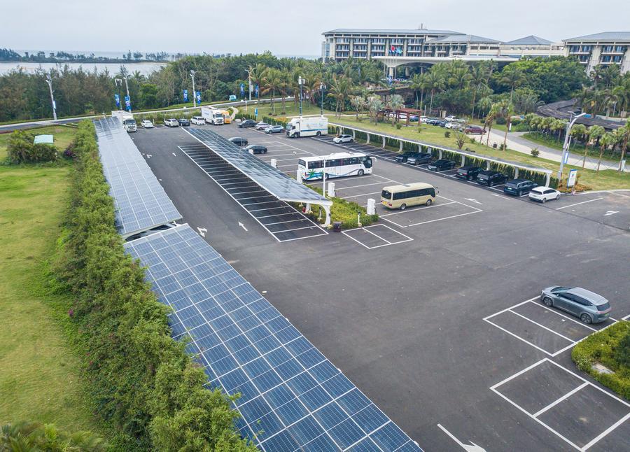 16 марта 2025 года, фотоэлектрические устройства на парковке в демонстрационной зоне в сфере нулевого выброса углерода в поселке Боао провинции Хайнань /Южный Китай/. /Фото: Синьхуа/