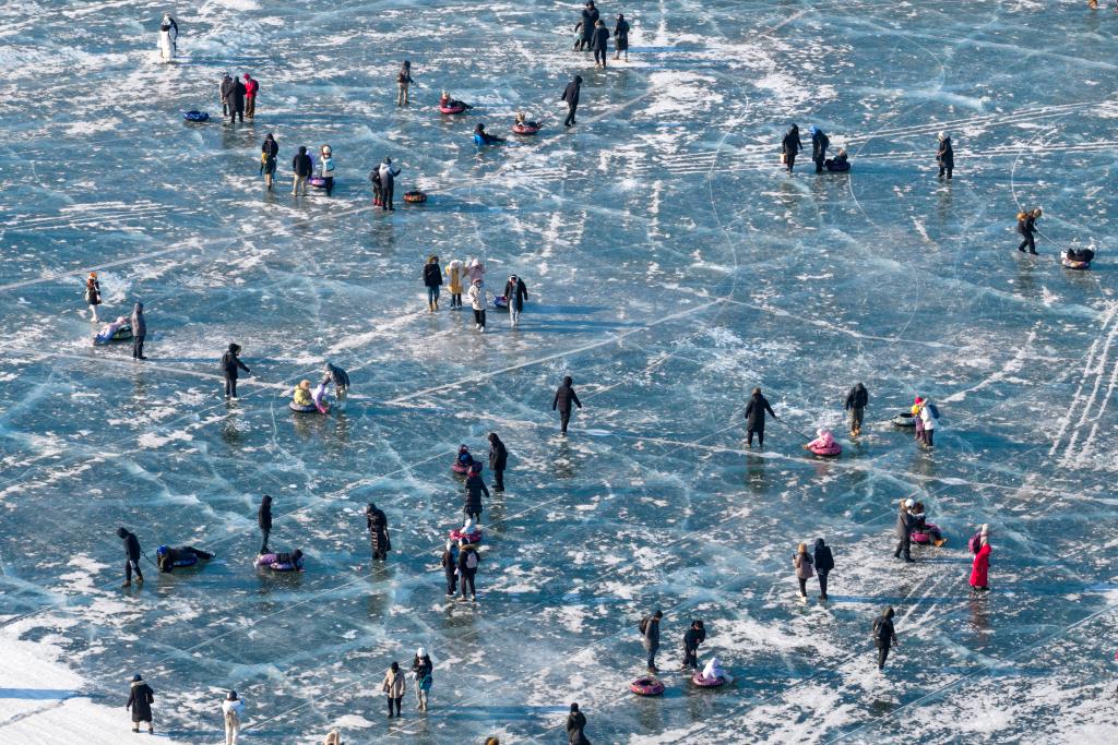 1 января 2026 года, туристы гуляют на льду реки Сунхуацзян /Сунгари/ в Харбине. /Фото: Синьхуа/