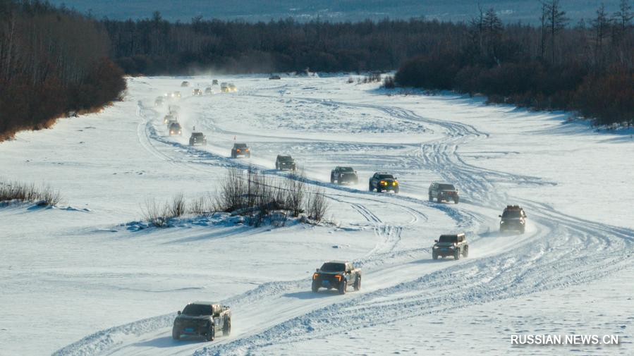 27 января 2026 года, автомобили едут по "Северному полярному ледовому пути". /Фото предоставлено Управлением культуры и туризма района Большого Хингана провинции Хэйлунцзян/