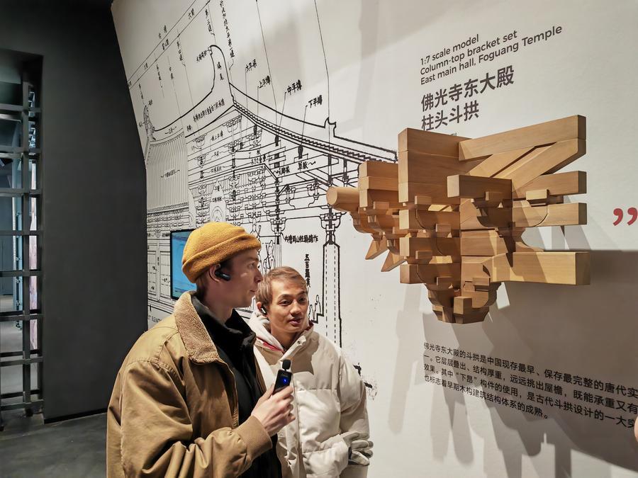 29 января 2026 года, танцоры российского Национального классического балета "Наследие" посещают выставку цифрового искусства на тему древней архитектуры в городе Тайюань, административном центре провинции Шаньси /Северный Китай/. /Фото: Синьхуа/