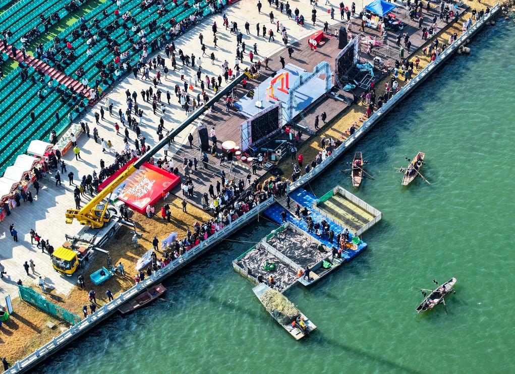 Тайчжоу /пров. Цзянсу/, 1 февраля /Синьхуа/ -- В субботу в акватории озера Циньху, расположенного на территории города Тайчжоу провинции Цзянсу /Восточный Китай/, состоялась зимняя рыбалка, что создало радостную картину обильного улова. -0-