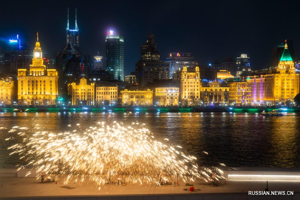 Шанхай, 9 февраля /Синьхуа/ -- В рамках фестиваля культуры праздника Весны /Чуньцзе, традиционный китайский Новый год по лунному календарю/ на берегу реки Хуанпу на территории нового района Пудун города Шанхай /Восточный Китай/ на днях состоялось необычное "шоу фейерверков" из расплавленного чугуна, что стало ярким зрелищем на фоне ночного неба.