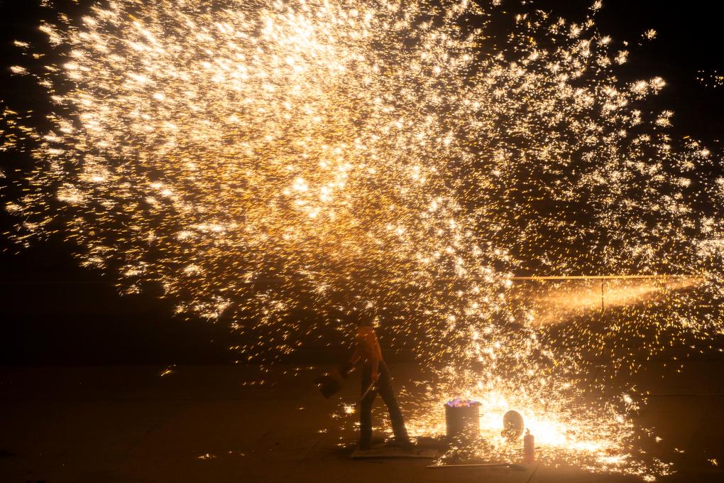 Потрясающее "шоу фейерверков" из расплавленного чугуна в Шанхае