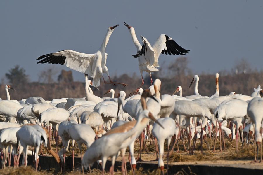 Наньчан, 10 февраля /Синьхуа/ -- Стерх или белый журавль, занесенный в Красную книгу Международного союза охраны природы, классифицируется как вид, находящийся под критической угрозой исчезновения. Каждый год с наступлением холодов обитающие в Сибири белые журавли, на популяцию которых приходятся свыше 95 проц. от общемировой численности этих птиц, летят зимовать из сибирских краев на озеро Поянху, расположенное на территории провинции Цзянси /Восточный Китай/, преодолевая расстояние протяженностью 5 тыс. км.