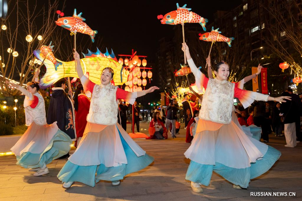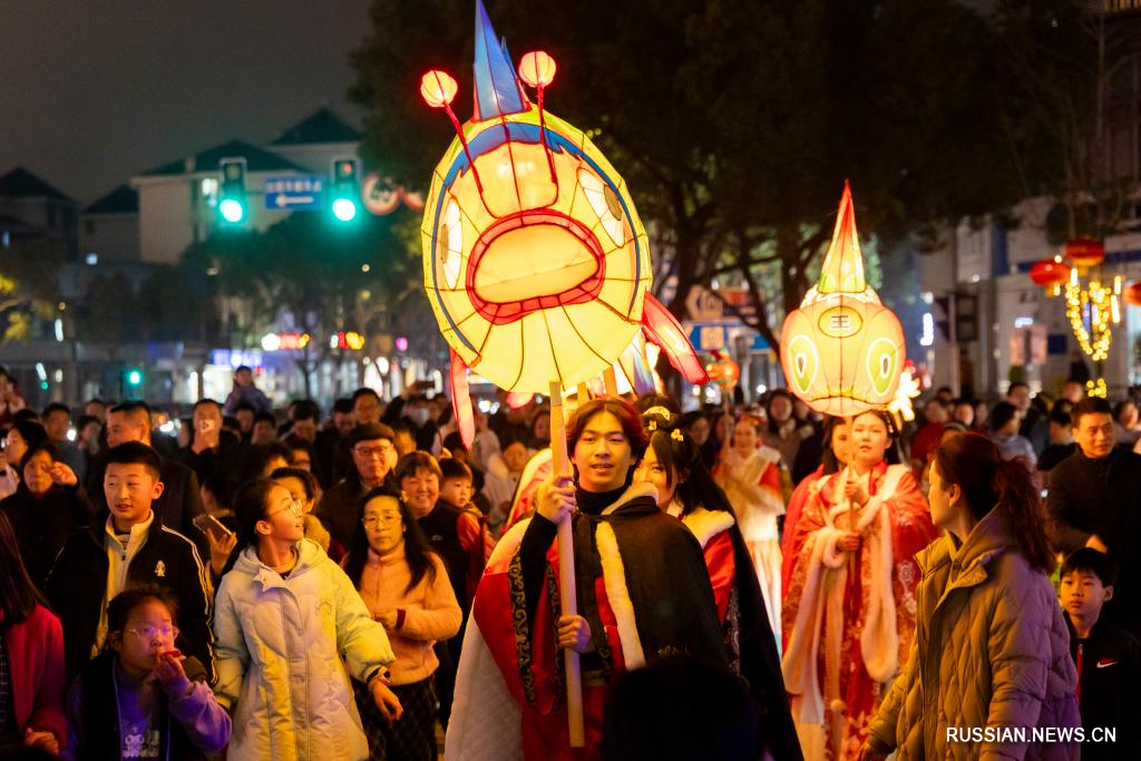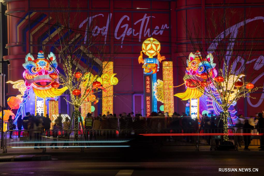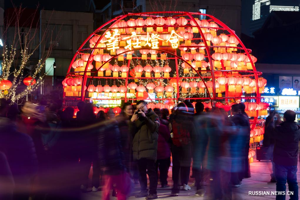 Шанхай, 14 февраля /Синьхуа/ -- В преддверии праздника Весны /Чуньцзе, традиционный китайский Новый год по лунному календарю/ в поселке Синьчжуан города Шанхай /Восточный Китай/ люди могут полюбоваться разнообразными праздничными фонарями.