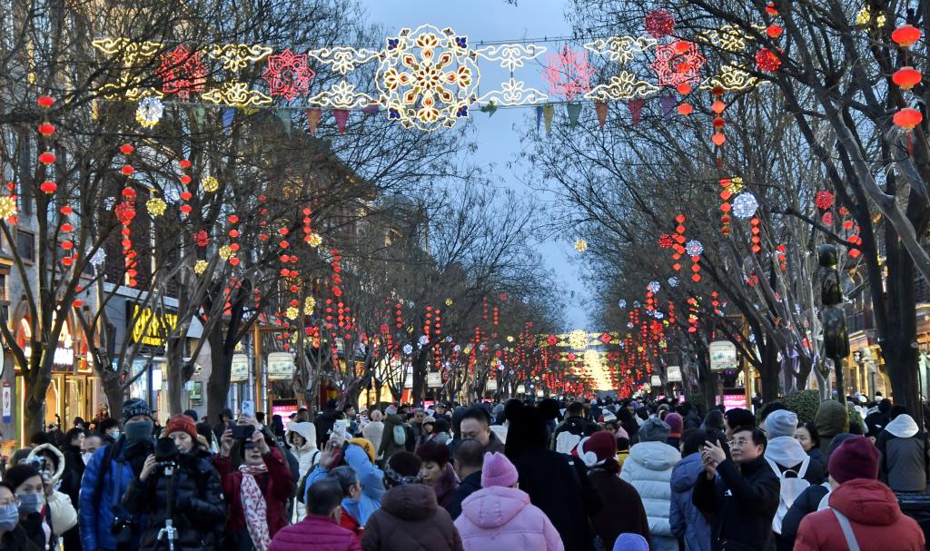 Пекин, 17 февраля /Синьхуа/ -- В каникулы по случаю праздника Весны /Чуньцзе, традиционный китайский Новый год по лунному календарю/ множество людей приезжают на улицу Цяньмэнь Дацзе в историческом центре китайской столицы, чтобы погулять по старинным переулочкам, попробовать традиционные уличные лакомства, ощутить дух древнего Пекина. -0-