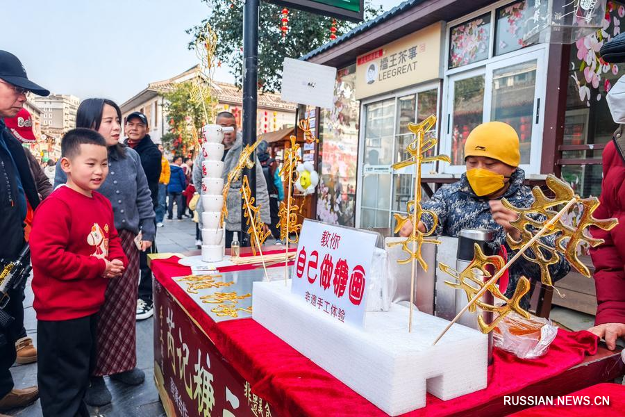 17 февраля 2026 года, туристы ждут свой фигурный леденец из карамели в городе Чандэ провинции Хунань в Центральном Китае. /Фото: Синьхуа/