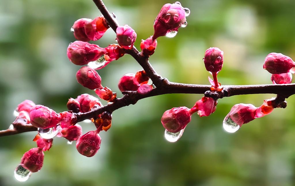 Пекин, 2 марта /Синьхуа/ -- На снимке: цветы в капельках весенних дождей формируют живописные пейзажи в Китае. -0-