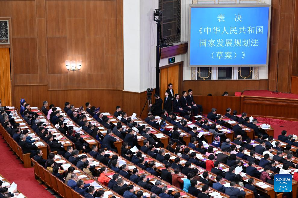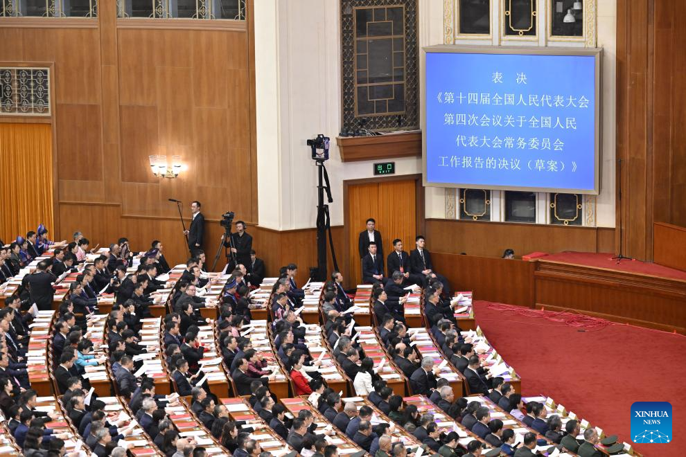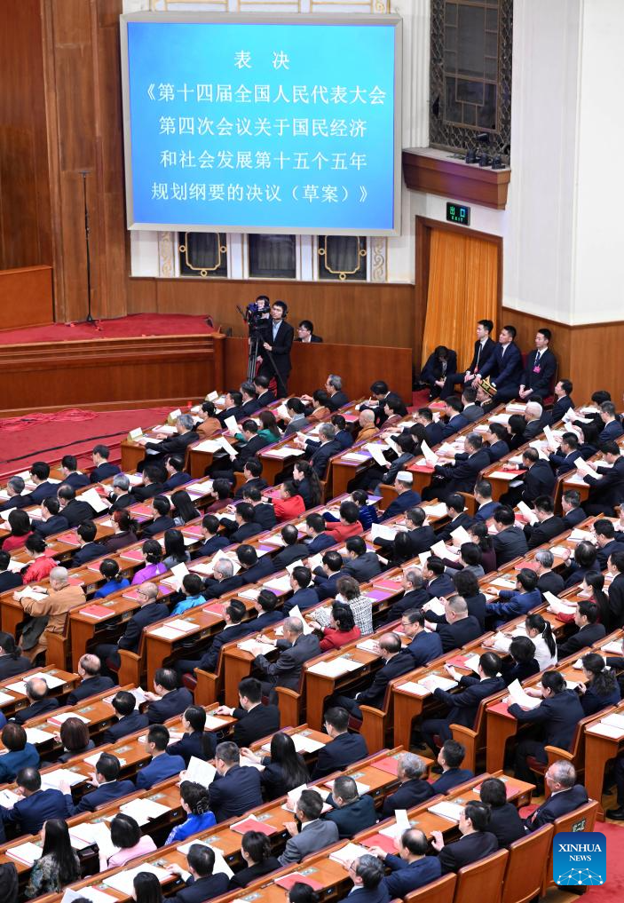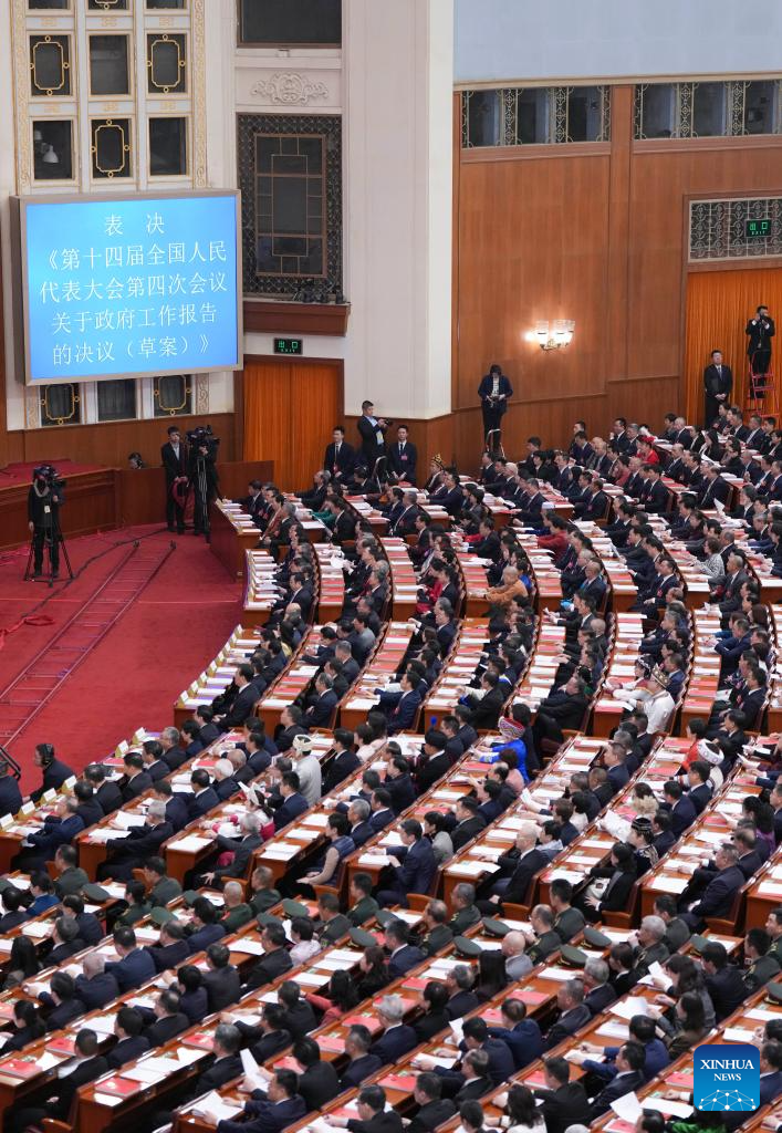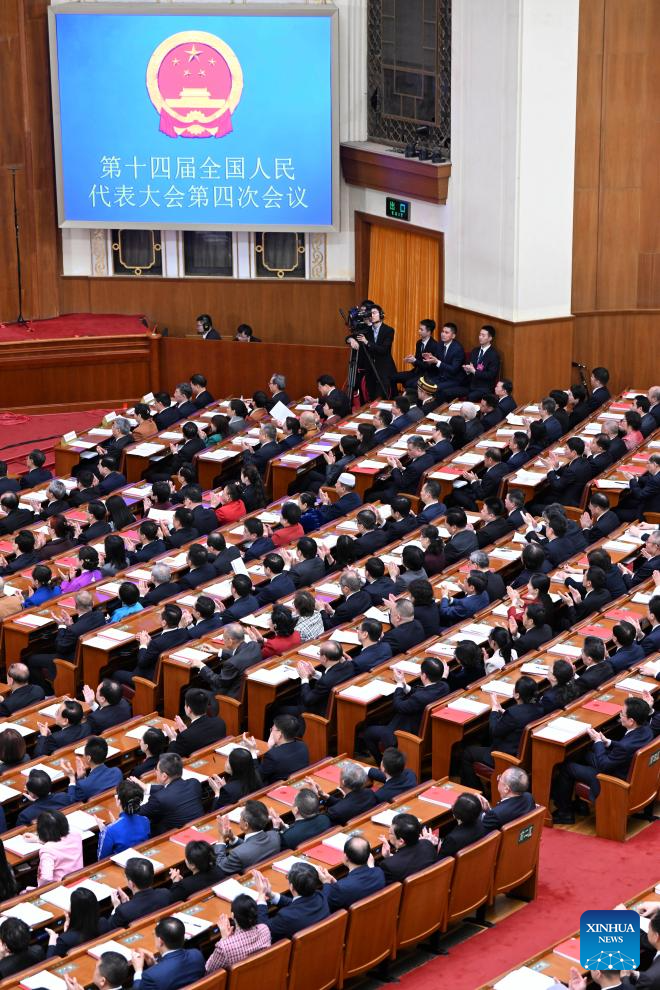 Пекин, 12 марта /Синьхуа/ -- В четверг в Доме народных собраний в Пекине началось заключительное заседание 4-й сессии Всекитайского собрания народных представителей /ВСНП/ 14-го созыва.