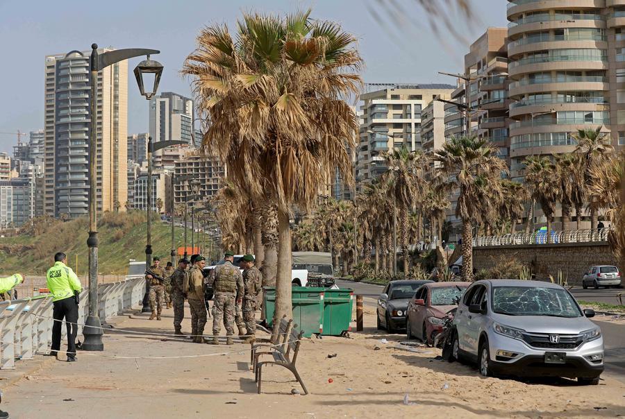 12 марта, Бейрут. Ливанские военные и полицейские осматривают место израильского авиаудара в районе Рамлет-эль-Бейда ливанской столицы. /Фото: Синьхуа/