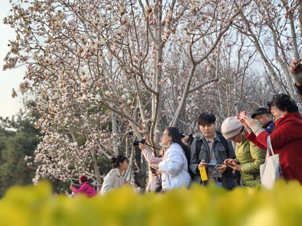 Пекин, 13 марта /Синьхуа/ -- По мере потепления в Пекине распускаются цветы магнолии. -0-