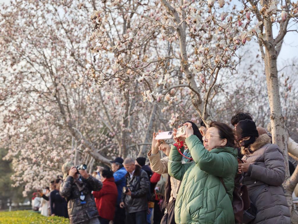 Пекин, 13 марта /Синьхуа/ -- По мере потепления в Пекине распускаются цветы магнолии. -0-