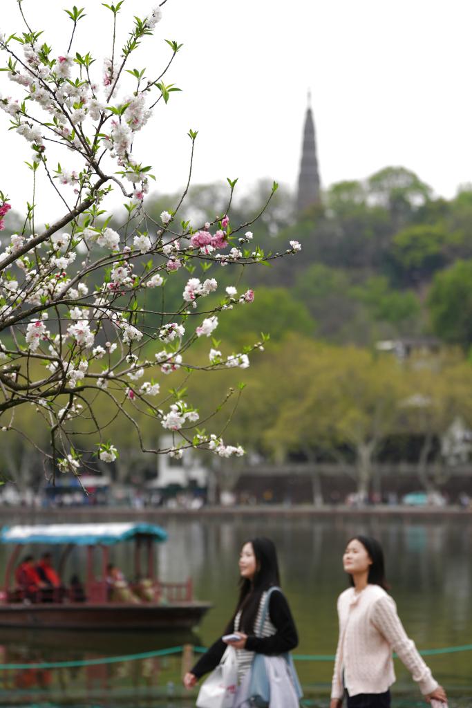 Ханчжоу, 3 апреля /Синьхуа/ -- В последние дни озеро Сиху в городе Ханчжоу провинции Чжэцзян на востоке Китая привлекает многочисленных посетителей красивым весенним пейзажем. -0-