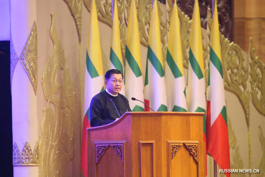 28 марта, Нейпьидо. Мин Аун Хлайн выступает во время церемонии, посвященной годовщине землетрясения в Мандалае. /Фото: Синьхуа/