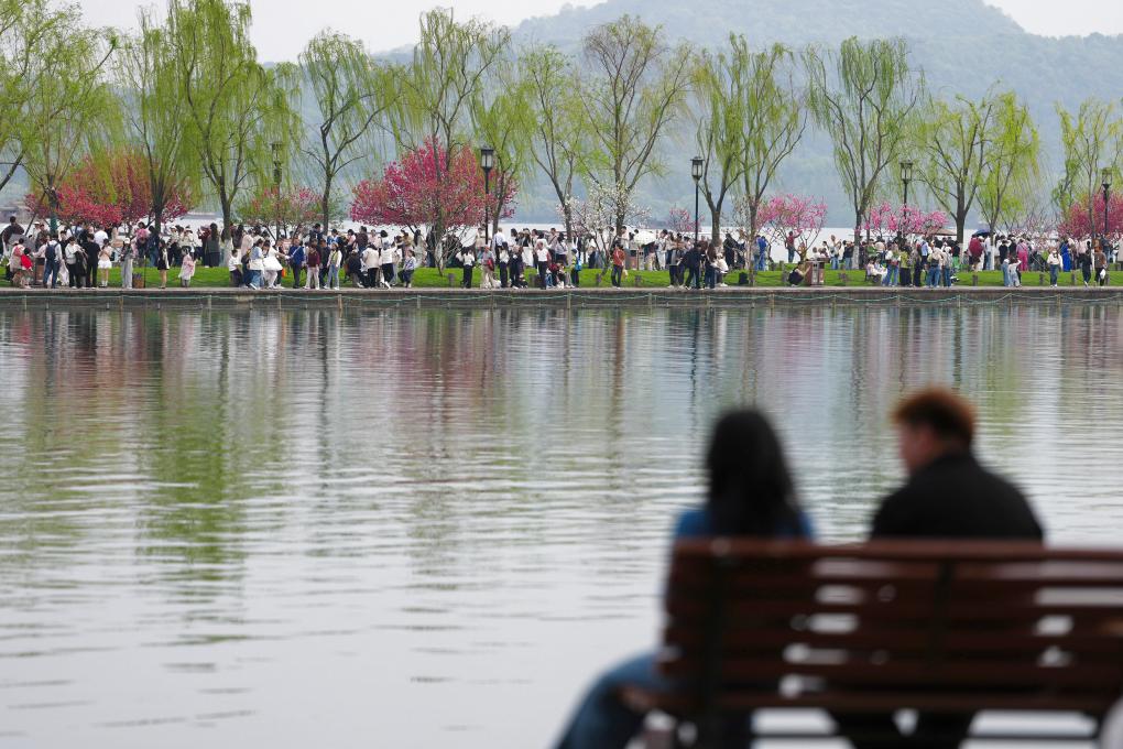 Ханчжоу, 3 апреля /Синьхуа/ -- В последние дни озеро Сиху в городе Ханчжоу провинции Чжэцзян на востоке Китая привлекает многочисленных посетителей красивым весенним пейзажем. -0-