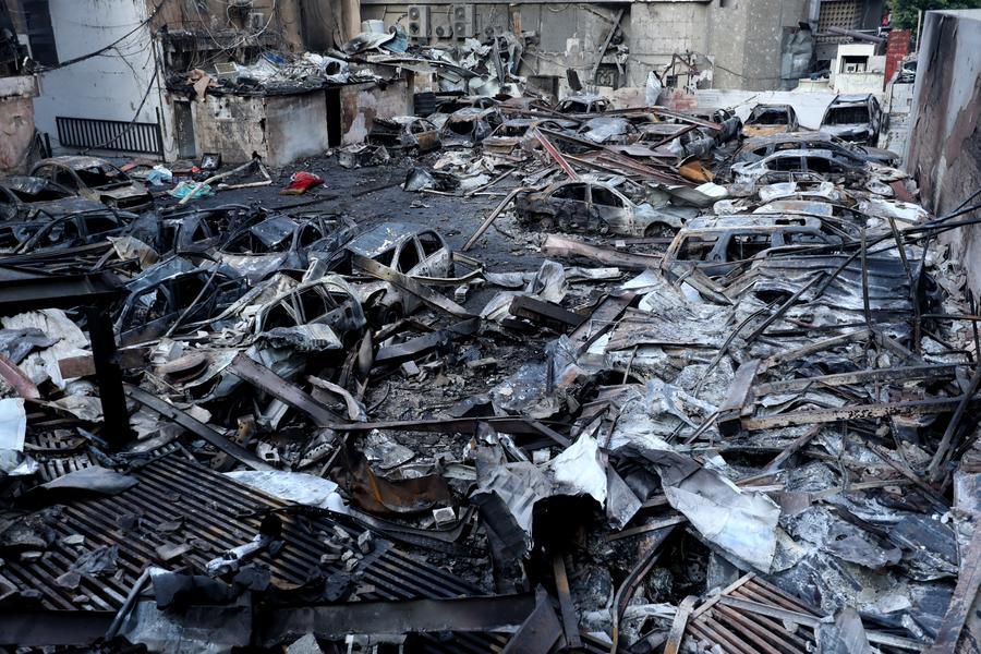 9 апреля, Бейрут. Автомобили, поврежденные в результате израильских авиаударов, которые были нанесены днем ранее по столице Ливана Бейруту. /Фото: Синьхуа/