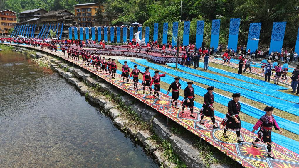 Луншэн /Гуанси-Чжуанский АР/, 20 апреля /Синьхуа/ -- Показ длинных волос, дефиле, песенный диалог и танцы - в числе мероприятий, прошедших по случаю праздника "третье число третьего месяца" по лунному календарю в уезде Луншэн 19 апреля. Фестиваль длинных волос является визитной карточкой местной деревни Хуанло, населенной преимущественно красными яо - частью народа яо. -0-