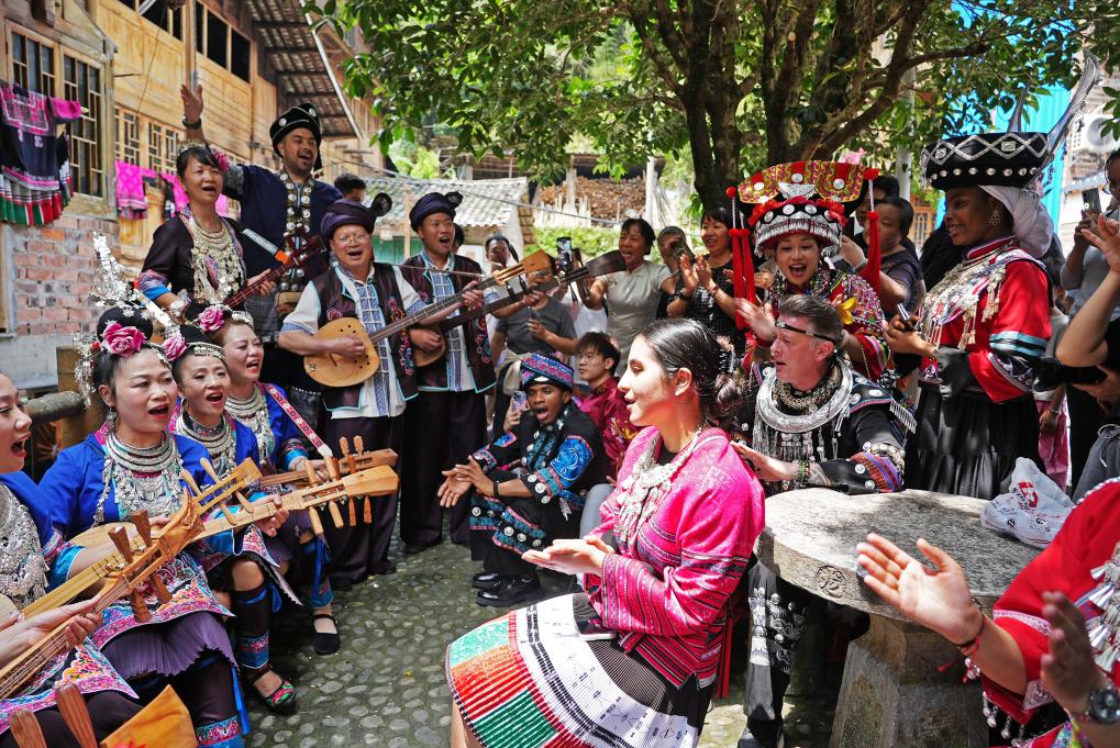 Луншэн /Гуанси-Чжуанский АР/, 20 апреля /Синьхуа/ -- Показ длинных волос, дефиле, песенный диалог и танцы - в числе мероприятий, прошедших по случаю праздника "третье число третьего месяца" по лунному календарю в уезде Луншэн 19 апреля. Фестиваль длинных волос является визитной карточкой местной деревни Хуанло, населенной преимущественно красными яо - частью народа яо. -0-