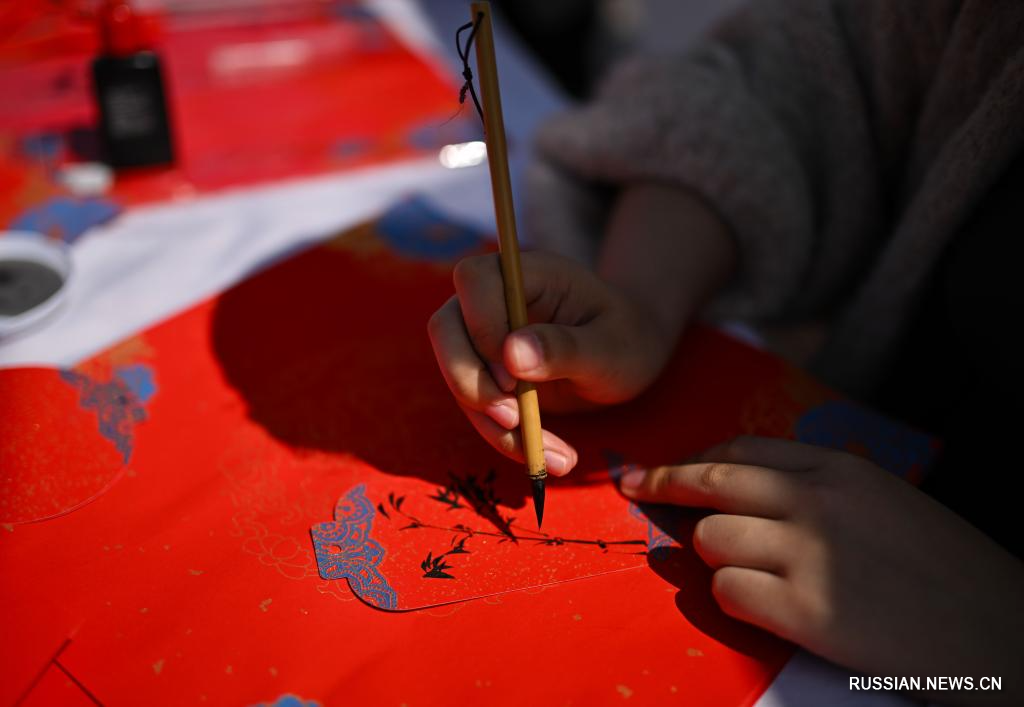 20 апреля, Алматы, Казахстан. Участник мероприятия по случаю Дня китайского языка ООН расписывает книжную закладку. /Фото: Синьхуа/