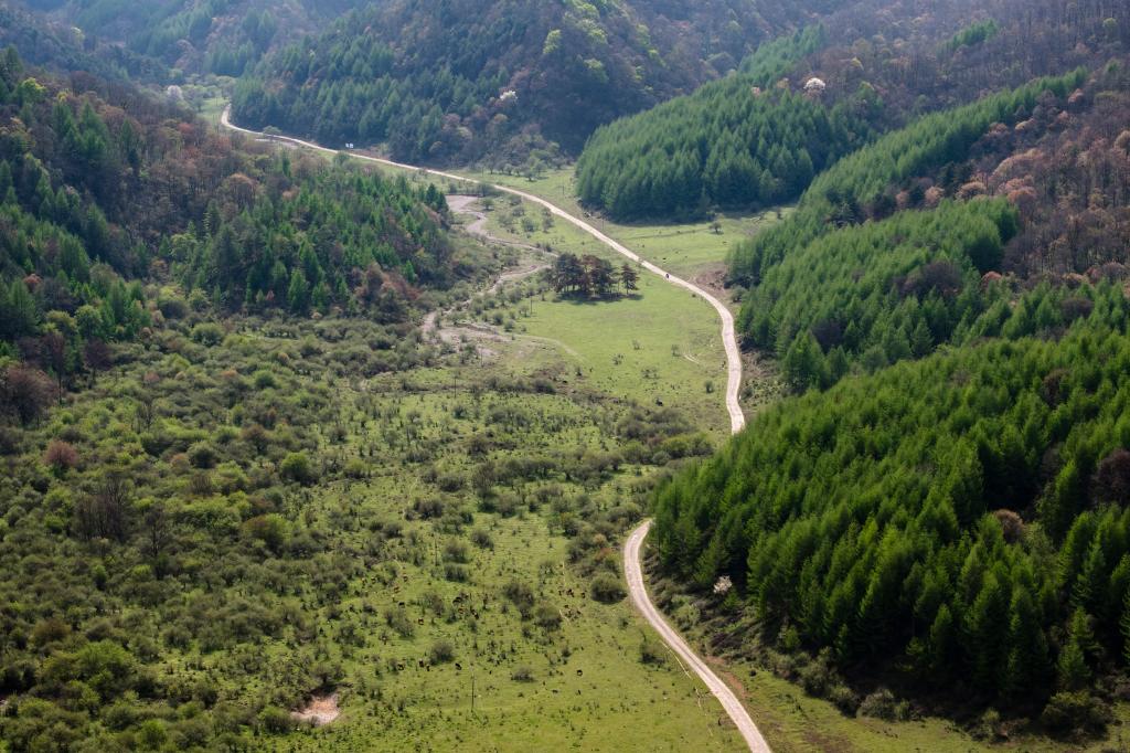 Сиань, 26 апреля /Синьхуа/ -- Весной горы Башань в южной части провинции Шэньси /Северо-Западный Китай/ покрываются новой зеленью, и ландшафт естественным образом сливается с сельскохозяйственными угодьями и деревнями, что создает повсюду живописные картины, полные жизненной силы. -0-