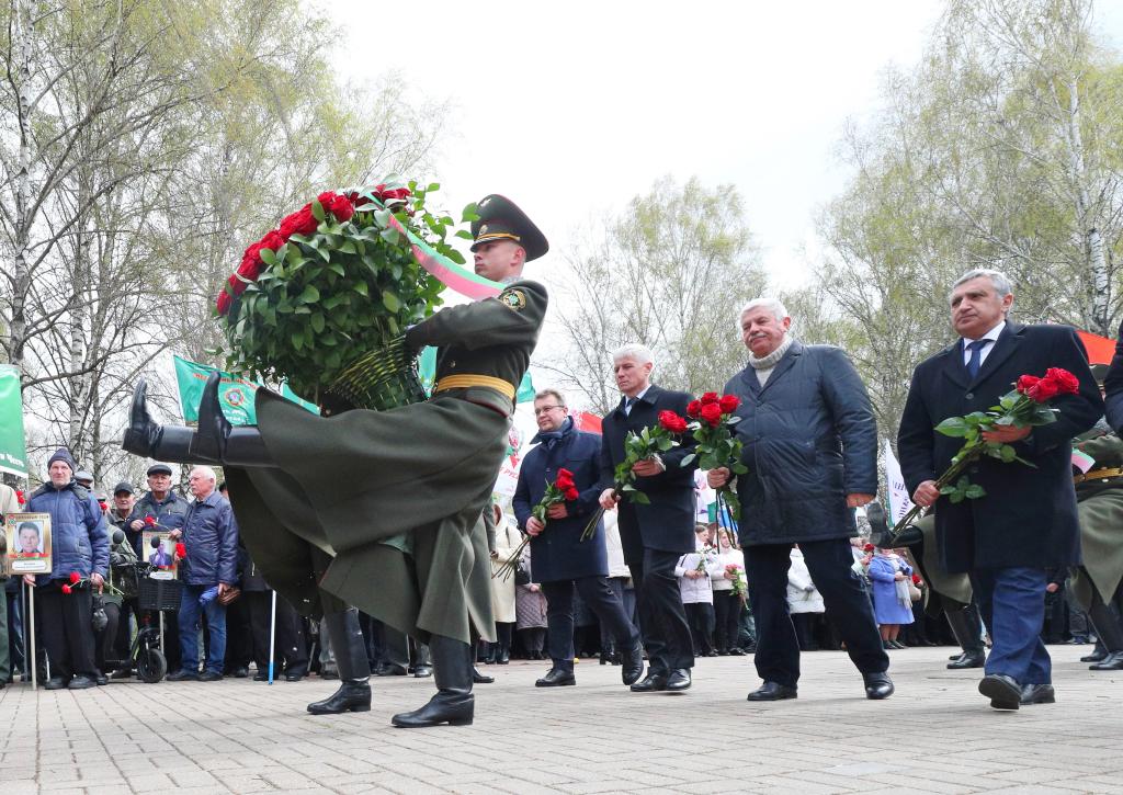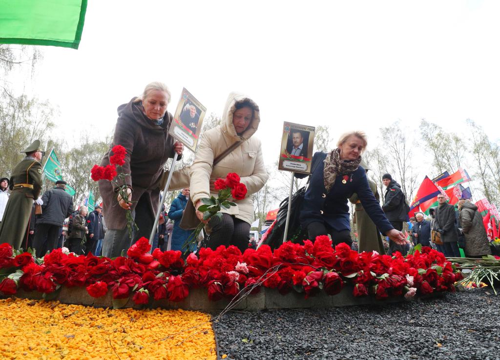 В знак памяти, скорби и уважения к подвигу ликвидаторов аварии на АЭС вместе с работниками внешнеполитического ведомства, среди которых был заместитель министра иностранных дел Беларуси Игорь Секрета, цветы возложили представители посольств России, Украины, Японии, а также руководство страновой команды ООН и Исполнительного комитета Содружества Независимых Государств /СНГ/.