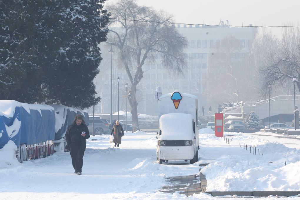 Сильные снегопады в столице Кыргызстана